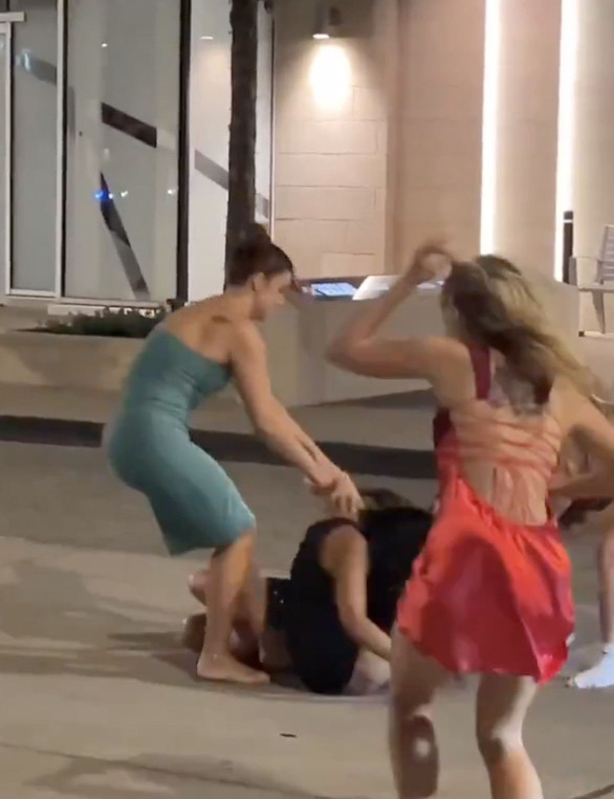 Aralarındaki sorunun ne olduğu anlaşılmazken, kadınların birbirilerini feci şekilde dövdükleri görüldü.