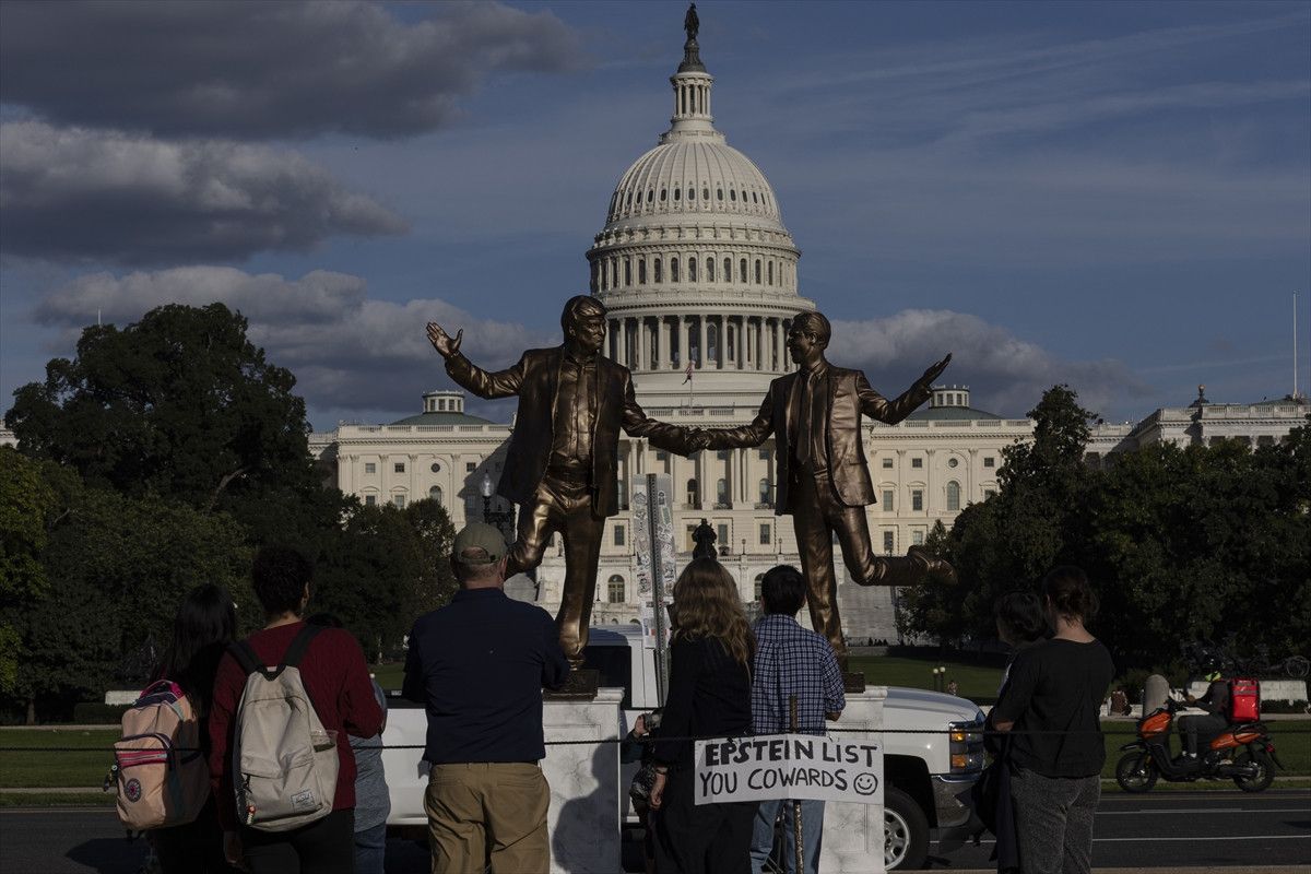 ABD’de, Başkan Donald Trump ile milyarder Jeffrey Epstein’ı ele ele tasvir eden ve geçen hafta kaldırılan heykel, Kongre binası önüne tekrar yerleştirildi. Heykel, The Secret Handshake isimli grup tarafından yapılmıştı.