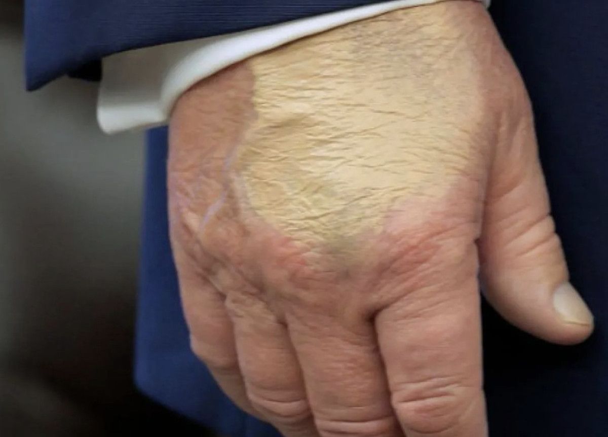 Trump’ın özellikle kamuya açık toplantılarda elindeki morluğu gizlemek için krem kullandığı iddiaları basına yansımıştı.