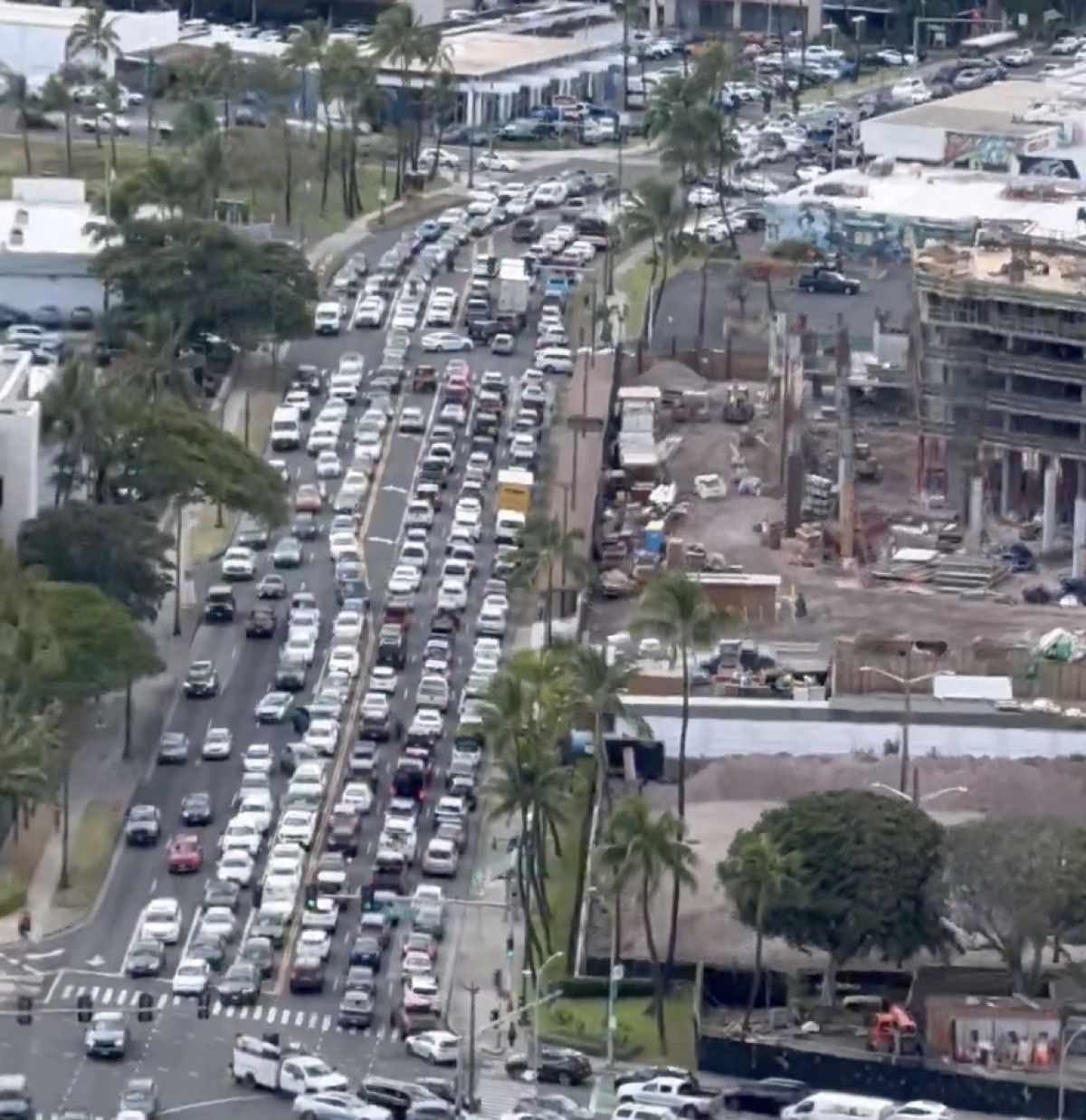 Sosyal medyada paylaşılan görüntülerde, Honolulu ve çevresinde yoğun trafik gözlendi.