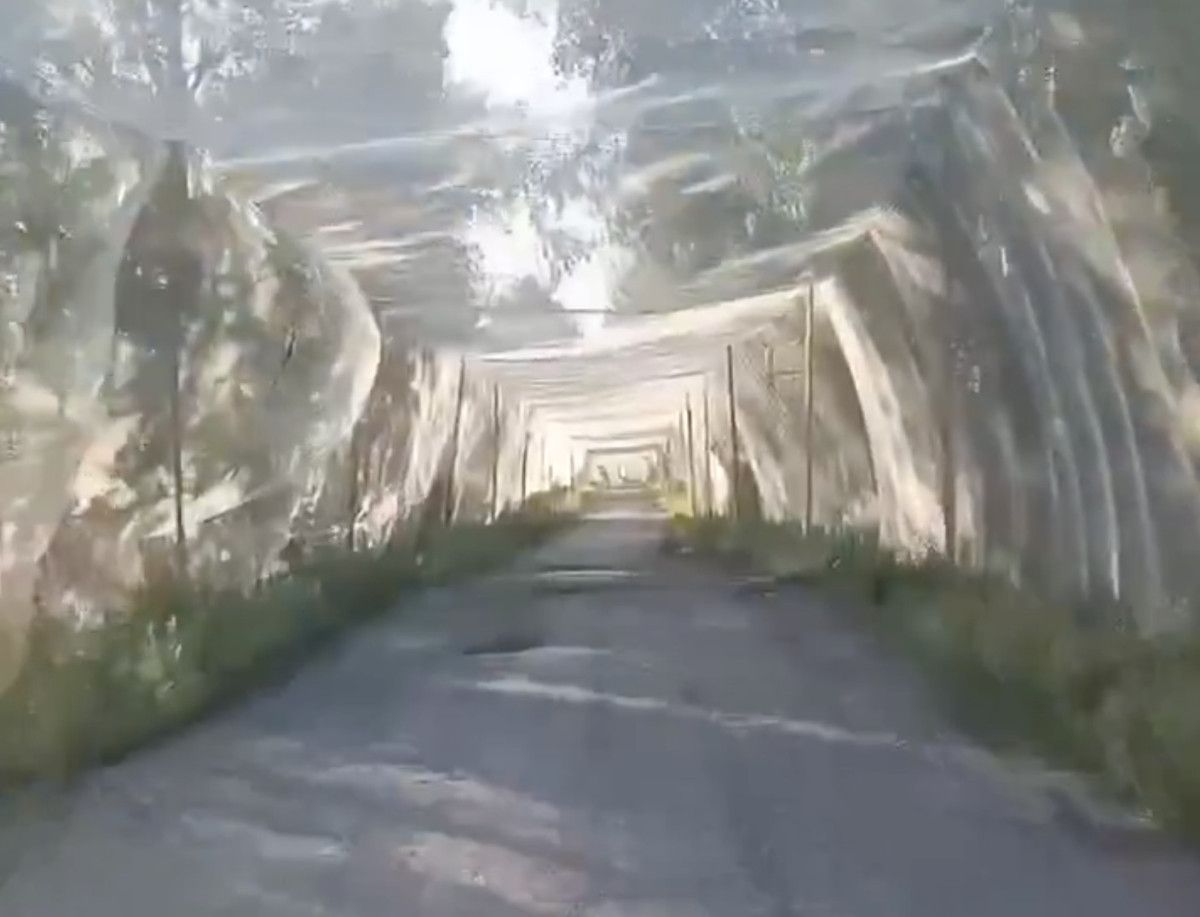 Sosyal medyada yayımlanan görüntülerde, yol boyunca yerleştirilen özel filelerle hava saldırılarının engellenmesi amaçlanıyor.