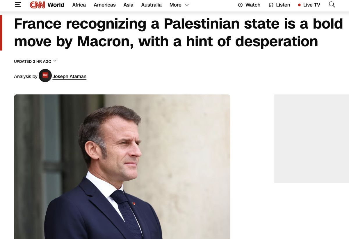 CNN’e göre Macron bu adımla hem Gazze’deki insani krize karşı Batı’nın suskunluğunu kırmayı, hem de Eylül ayında başka ülkeleri de bu kararın arkasında birleştirerek diplomatik bir blok yaratmayı hedefliyor. Ancak bunun diplomatik sermaye açısından ciddi bir risk olduğu ve Almanya gibi ülkelerin kolay ikna edilemeyeceği vurgulanıyor.