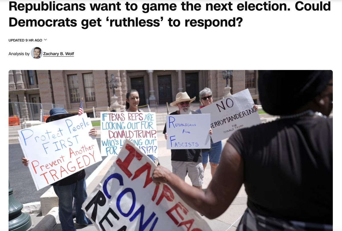 Demokratlar ise yıllardır savundukları tarafsız haritalama ilkesinden geri adım atmaya hazırlanıyor. New Jersey Valisi Phil Murphy, “Bıçakla silah savaşına gidilmez,” diyerek Demokratların da ellerindeki eyaletlerde benzer adımlar atabileceğini duyurdu. California Valisi Gavin Newsom ise anayasal engellere rağmen bağımsız harita komisyonunun yetkilerini elinden almayı tartışıyor.
