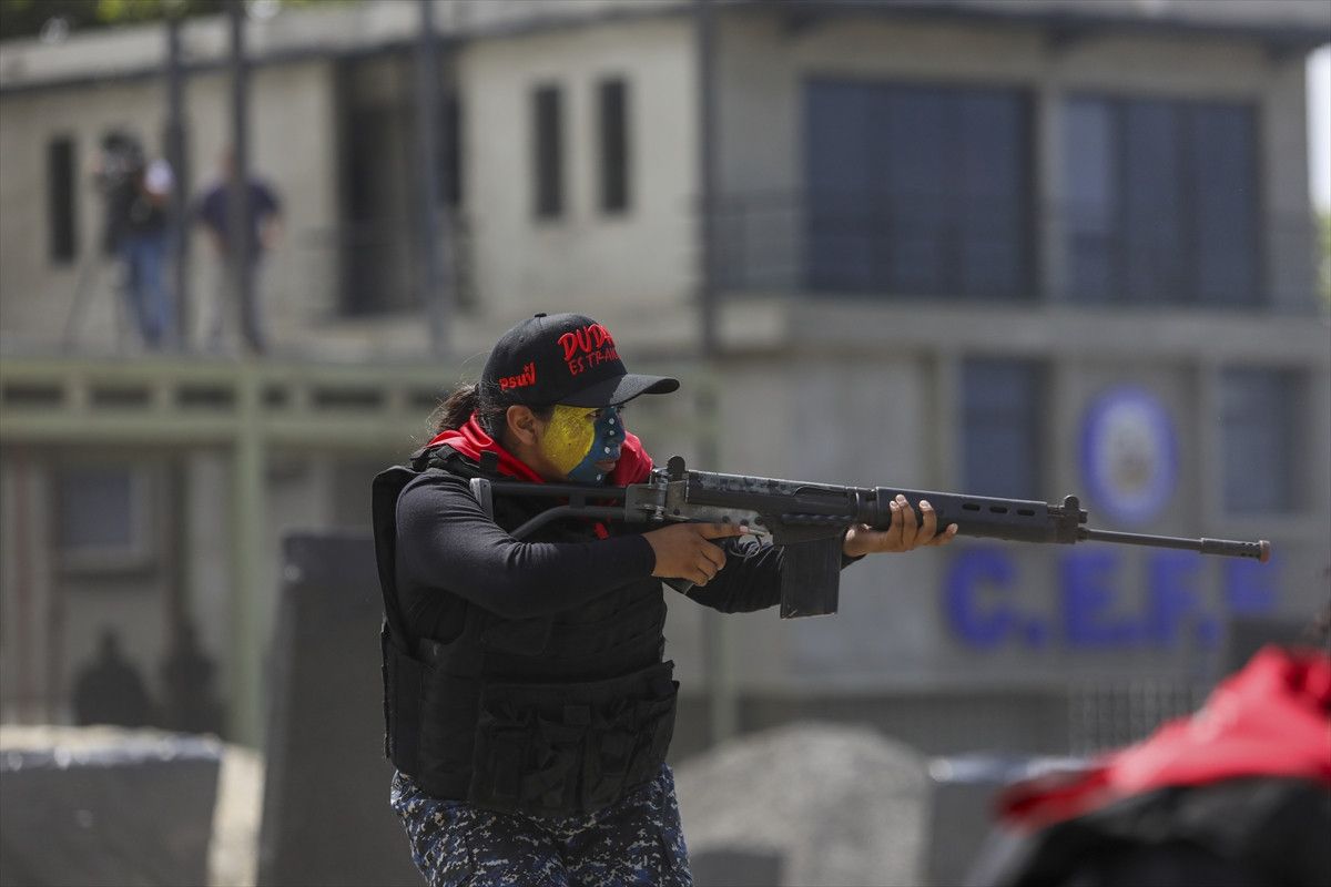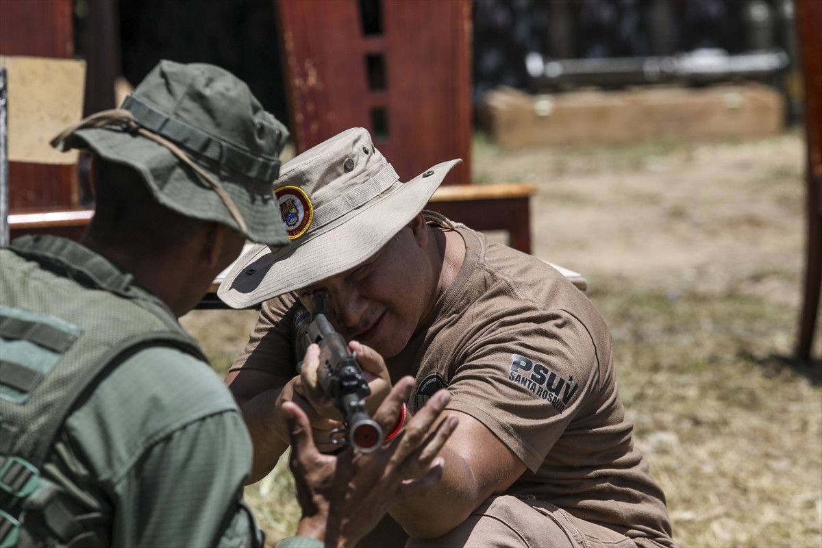 Venezuela’nın başkenti Caracas’ta düzenlenen özel harekat kursuna, ülkenin farklı bölgelerinden gönüllü gençler katıldı. Katılımcılar tatbikat kapsamında tüfeklerle eğitim alırken, zaman zaman göz yaşartıcı gaz eşliğinde koşarak dayanıklılık ve reflekslerini geliştirmeye çalıştı.