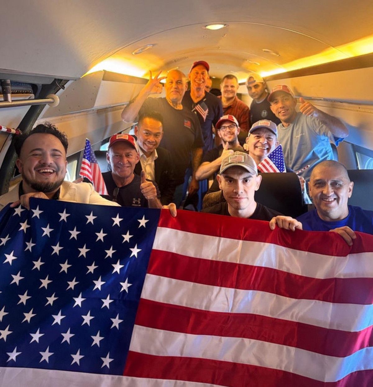 ABD’nin Venezuela Büyükelçiliği de serbest bırakılan vatandaşların Amerikalı diplomat John McNamara ile birlikte çekilmiş bir fotoğrafını paylaştı.
