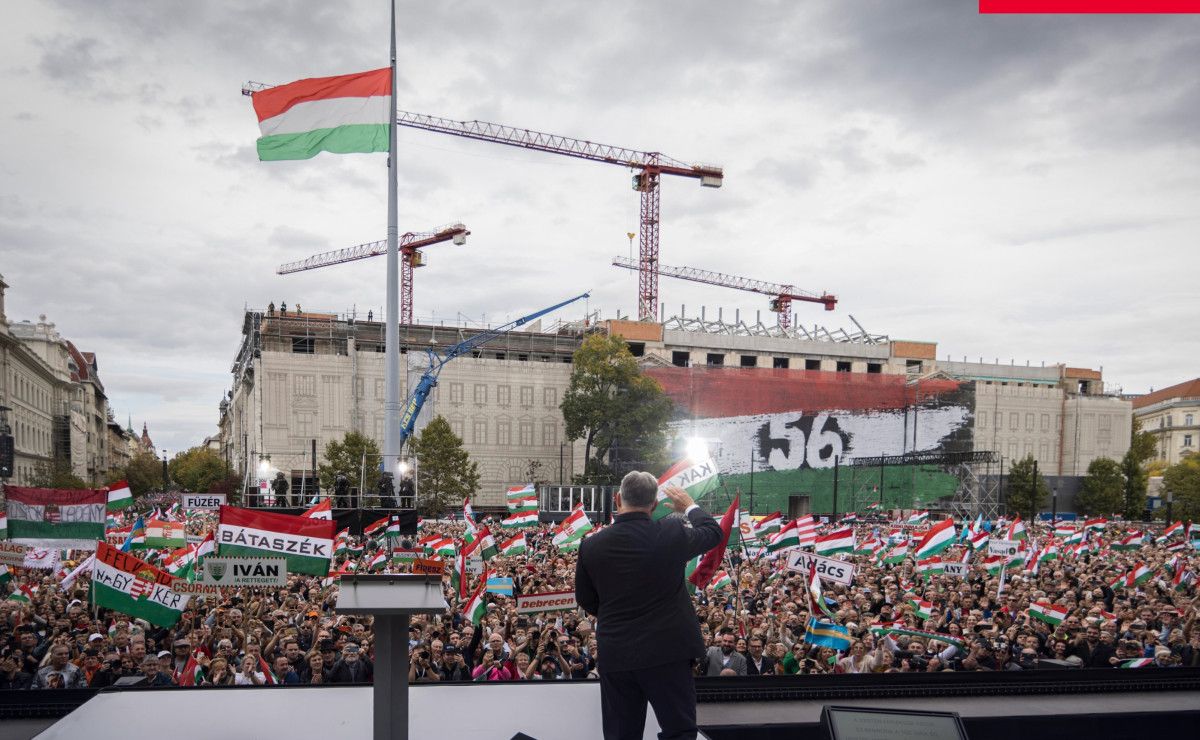 Başbakan, Viktor Orban, 1956’da Sovyet karşıtı Macar ayaklanmasının 56. yıl dönümü vesilesiyle gerçekleştirilen “Barış Yürüyüşü” sonrasında vatandaşlara hitap etti.