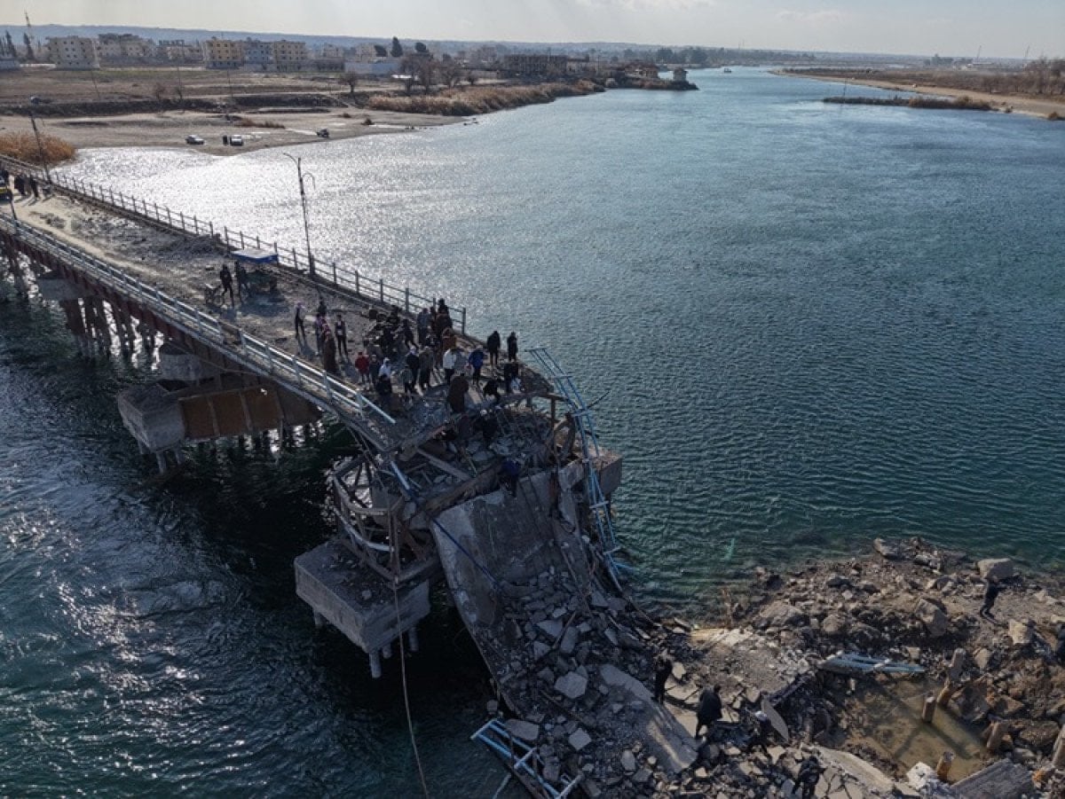 Terör örgütü YPG/SDG, Fırat Nehri’nin batısında işgal altında tuttuğu Tabka kentinden çekilirken bölgenin iki yakasını birbirine bağlayan köprüleri patlattı ve su hatlarına büyük zarar verdi.