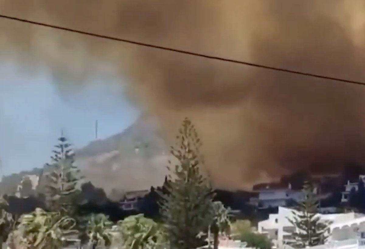 Yunanistan Sivil Koruma Bakanlığı, bölgede bulunanların cep telefonlarına gönderdiği “acil” kodlu mesajla bölgenin tedbiren tahliye edilmesini istedi.