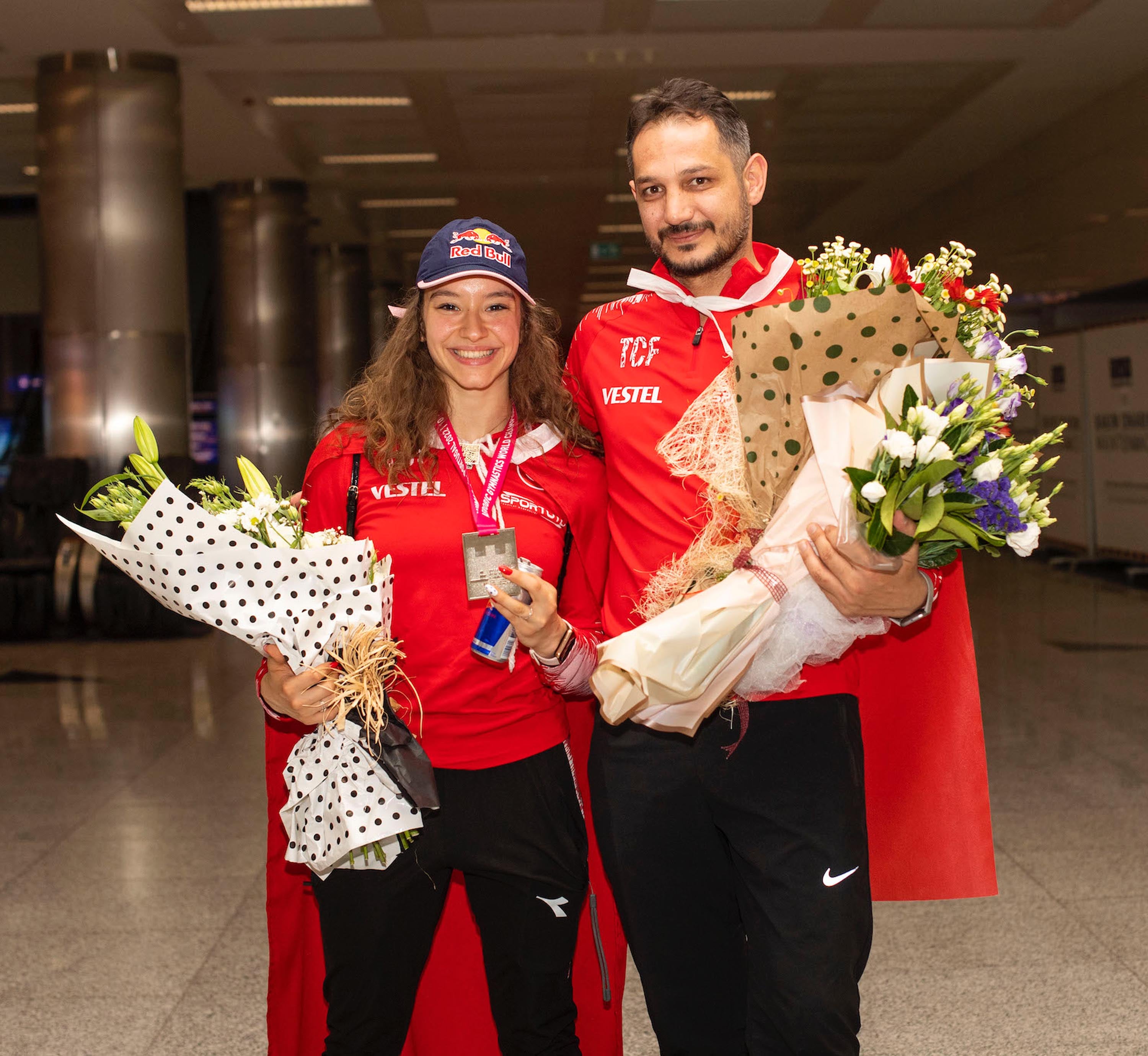 Türkiye’nin aerobik cimnastikteki gururu Red Bull sportmeni Ayşe Begüm Onbaşı, Aerobik Cimnastik Dünya Şampiyonası’ndaki ikinciliğinin akabinde yurda döndü. Portekiz’in Guimaraes kentindeki şampiyonada 20.350 puanla gümüş madalya kazanan başarılı sporcuyu İzmir Adnan Menderes Havalimanı çıkışında sevenleri çiçekler ve konfetilerle karşıladı.