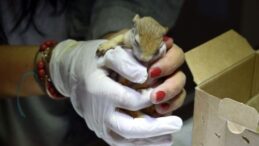 Veteriner teknikeri Doğacı, minik sincaba ‘annelik’ yapıyor