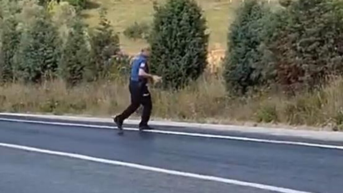 Yalova’da kaplumbağayı ezilmekten kurtaran polis takdir topladı