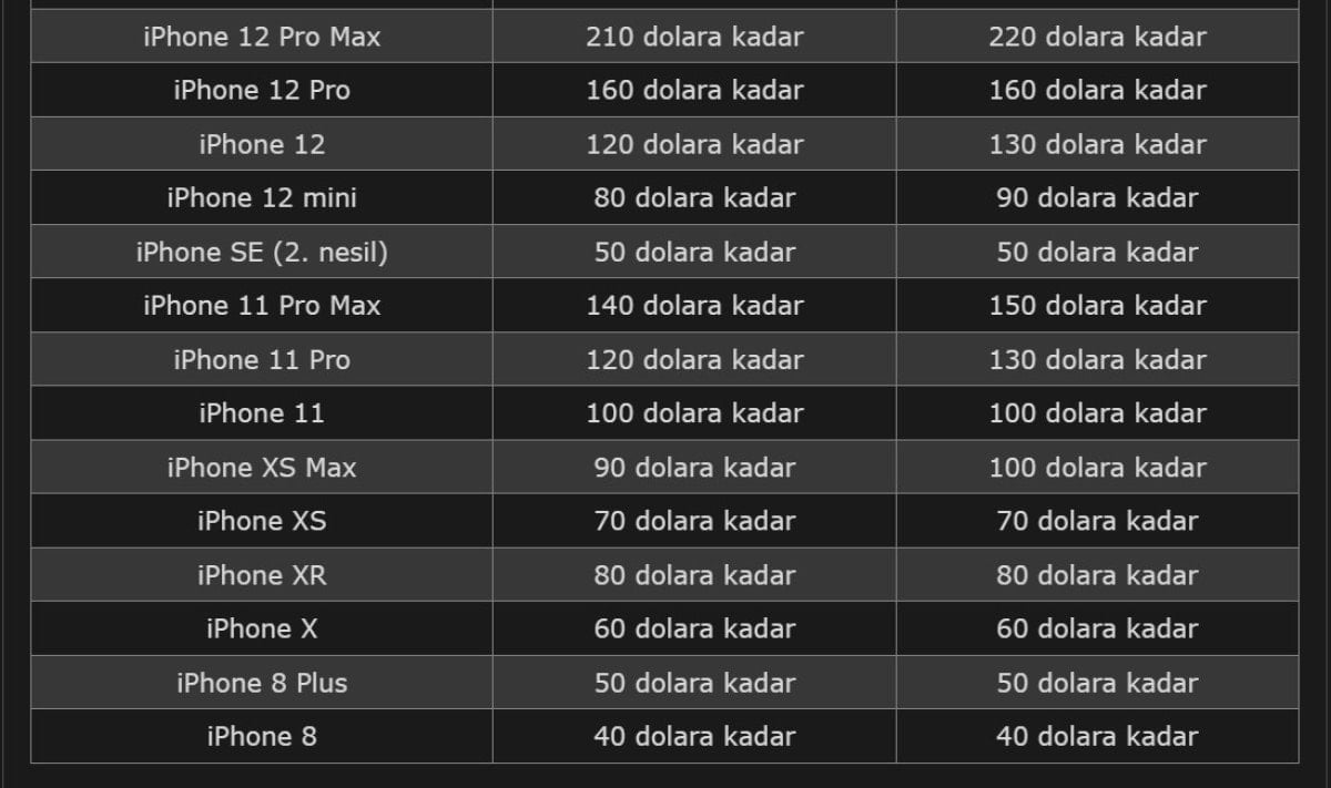 Apple, kendi ekosistemindeki ürünlerin yanı sıra bazı Android akıllı telefonlar için belirlediği takas değerlerini de bu güncelleme kapsamında yeniledi.