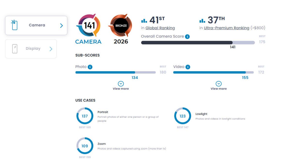 Tek kameralı yapısı nedeniyle telefoto ve ultra geniş açı gibi kategorilerde düşük puanlar kaçınılmaz oldu.
