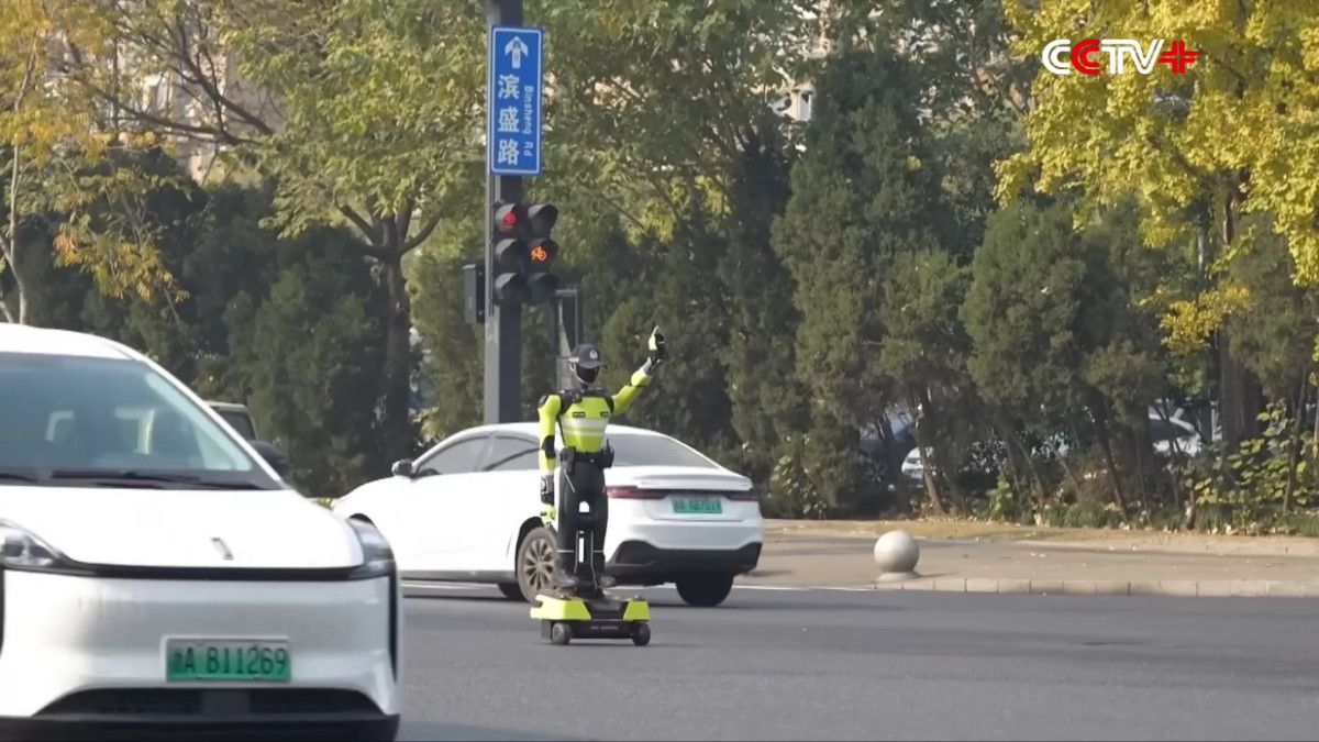 Hangzhou Trafik Polisi Taktik Birimi tarafından geliştirilen ve “Hangxing No. 1” adı verilen 1.8 metre boyundaki robot, Binjiang bölgesindeki işlek kavşaklarda trafiği yönlendiriyor.