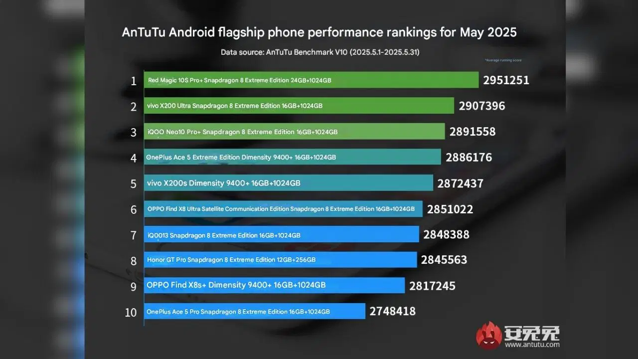 Yayınlanan listeye göre en güçlü ikinci Android telefon Vivo X200 Ultra oldu. Listenin devamında ise iQOO Neo 10 Pro+, OnePlus Ace 5 Ultra, Vivo X200s, OPPO Find X8 Ultra, iQOO 13 8. Honor GT Pro, OPPO Find X8s+ ve OnePlus Ace 5 Pro yer alıyor.