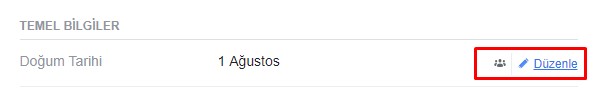 Bu kısımda doğum tarihinizin yazdığı kısmı göreceksiniz ve bu doğum tarihi yazısının yanında düzenleme işaretine basarak düzenleme süreçlerini başlatabilirsiniz.