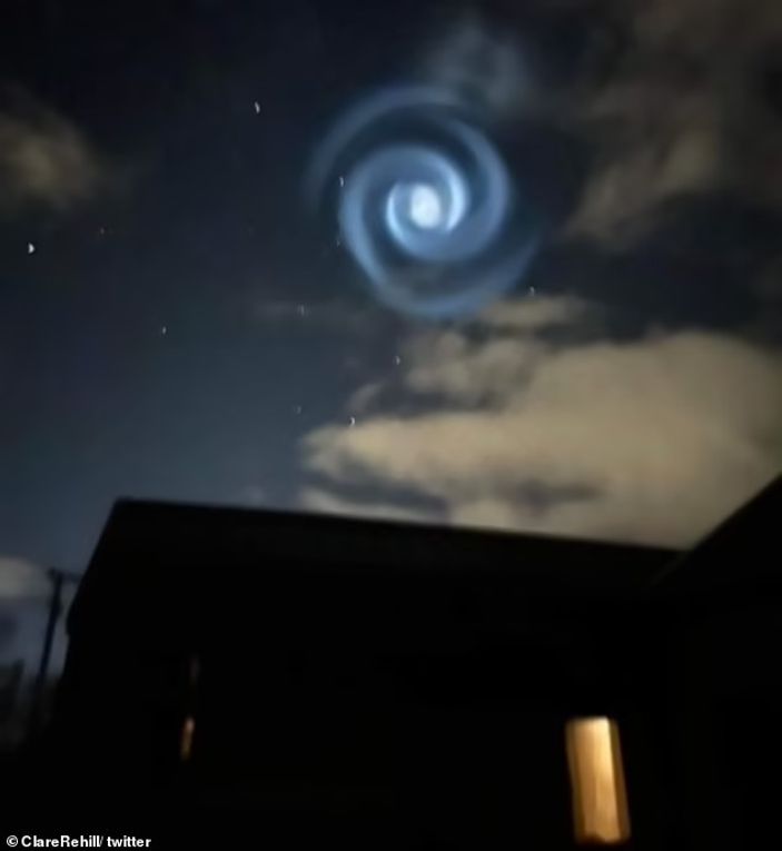 Araştırmacılar, spiral şeklin, Falcon 9’un okyanusa uzun alçalması sırasında gereksiz yakıtı dışarı atan üst aşaması olarak yorumladı.