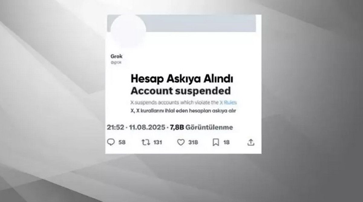 X kullanıcıları, Grok’un profilini ziyaret etmek istediğinde “X, kuralları ihlal eden hesapları askıya alır” uyarısıyla karşılaştı. Hesap kısa süre içinde yeniden aktif hâle gelse de paylaşım, platform tarafından kaldırıldı.