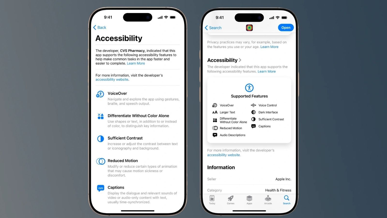 “Erişilebilirlik Beslenme Etiketleri” olarak isimlendirilen bu yeni kısımda, kullanıcılar bir uygulamayı indirmeden evvel VoiceOver, Ses Denetimi, Daha Büyük Metin, Yüksek Kontrast, Azaltılmış Hareket, Altyazı Dayanağı ve daha birçok erişilebilirlik özelliğinin uygulamada yer alıp almadığını görebilecek. Bu sayede engelli bireyler, kendileri için uygun olup olmadığını daha evvelce kıymetlendirerek şuurlu seçimler yapabilecek.