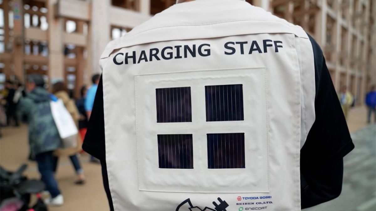 Osaka’daki Expo 2025 fuarında personel, sıcağın etkilerini azaltmak için ultra ince güneş panelleriyle donatılmış özel güneş enerjili yelekler giyiyor.