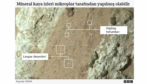 Araştırmacılar, bu özelliklerin, eski Mars mikroplarıyla ilişkili olabilecek kimyasal tepkimelerle oluşan mineralleri barındırabileceğine inanıyor.