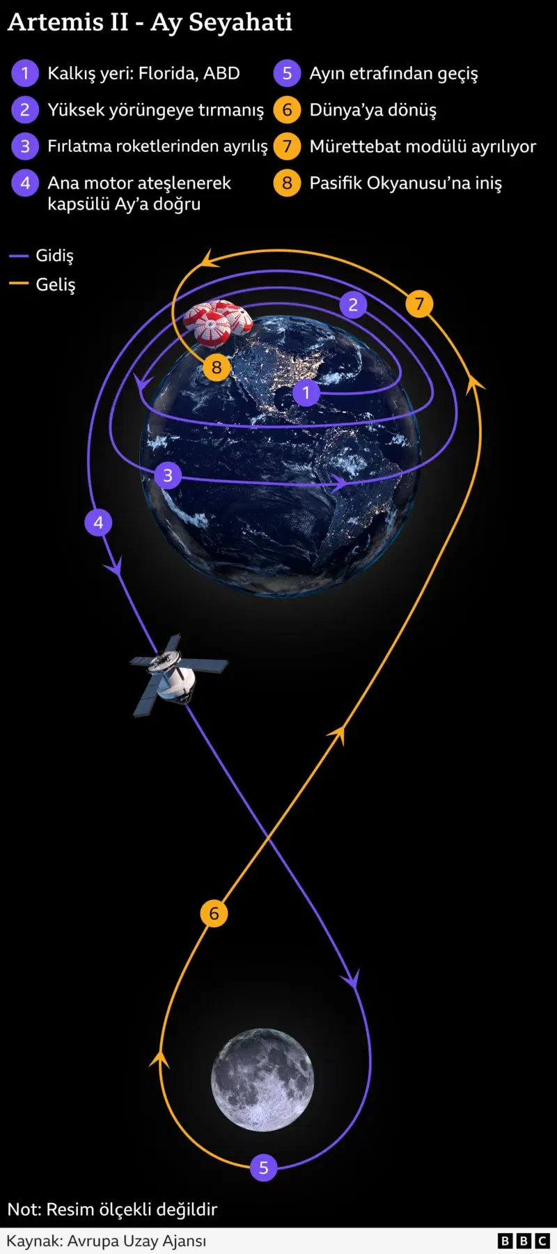Daha sonra, Orion’un yaşam destek, itme, güç ve navigasyon sistemlerini kontrol etmek için Ay’ın binlerce kilometre ötesindeki bir noktaya gidecekler.
