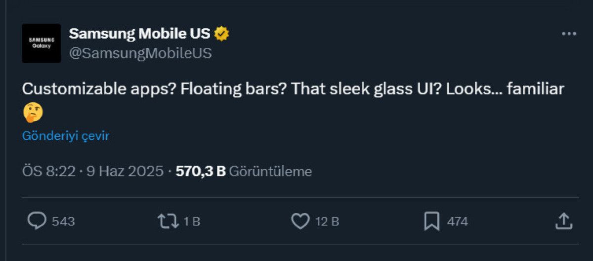 Samsung ABD’nin ilk paylaşımı, Apple’ın yeni “Liquid Glass” tasarım dilini ve kişiselleştirme özelliklerini hedef aldı.