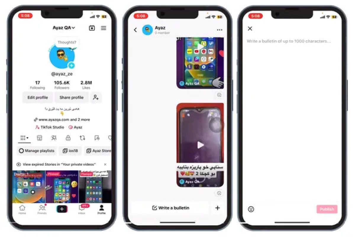 Yeni TikTok özelliği, markaların ve içerik üreticilerinin takipçileriyle herkese açık, tek yönlü (bire çok) mesajlar paylaşmasına olanak tanıyor. Bu panolarda metin, resim ve video gönderileri paylaşılabiliyor.