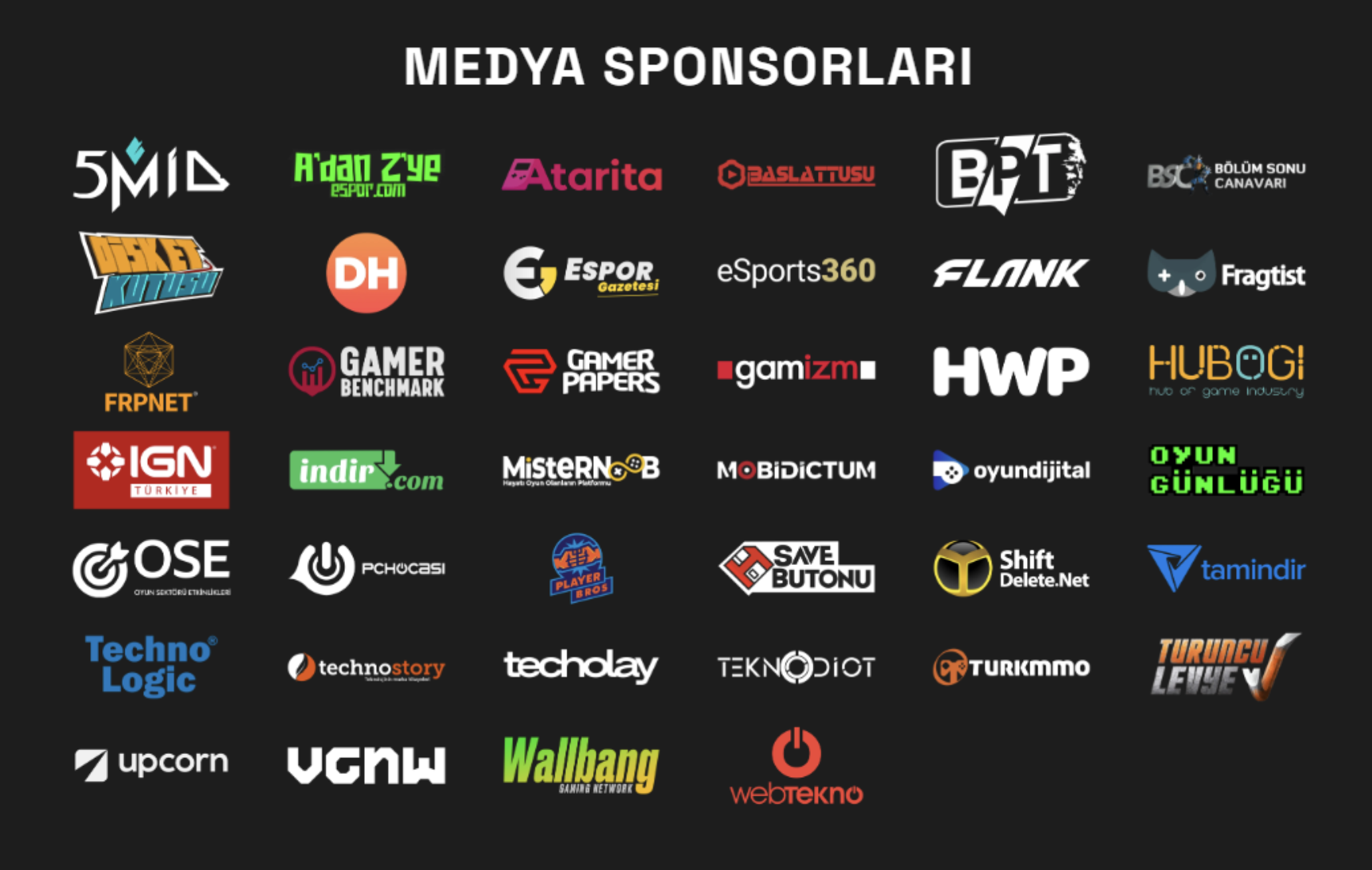 Geçtiğimiz yıl olduğu üzere, bu yıl da Türkiye’nin oyun, teknoloji ve espor haberleri ile bölümde isminden kelam ettiren medya mensupları Türkiye Oyun Bölümü 2024’e dayanaklarını gösterdi. 5mid, A’dan Z’ye Espor, Atarita, Başlat Tuşu, Kısım Sonu Canavarı, BPT Oyun, Disket Kutusu, Donanım Haber, Espor Gazetesi, eSports 360, Flank Esports, Fragtist, FRPNet, Gamer Benchmark, Gamer Papers, Gamizm, HWP, Hubogi, IGN Türkiye, İndir.com, Misternoob, Mobidictum, Oyun Dijital, Oyun Günlüğü, OSE, PC Hocası, PlayerBros, Save Butonu, ShiftDelete, Tamindir.com, Technostory, TechnoLogic, Techolay, Teknodiot, Türk MMO, Turuncu Levye, Upcorn, VGNW, Wallbang Network ve Webtekno raporun medya sponsorları olarak yer aldı.