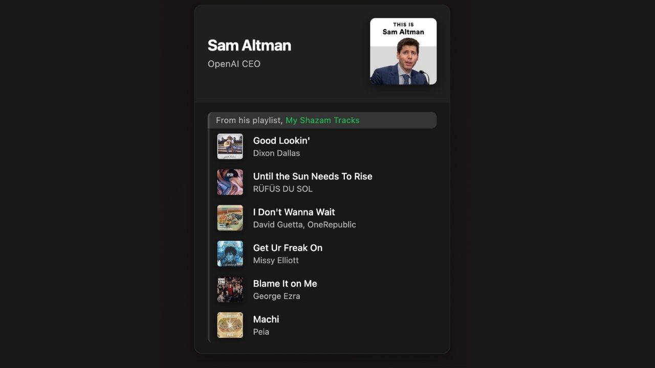 OpenAI CEO’su Sam Altman ise My Shazam Tracks ( Shazam Parçalarım) adlı bir çalma listesine sahip. Liste şu şekilde:
