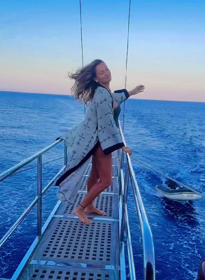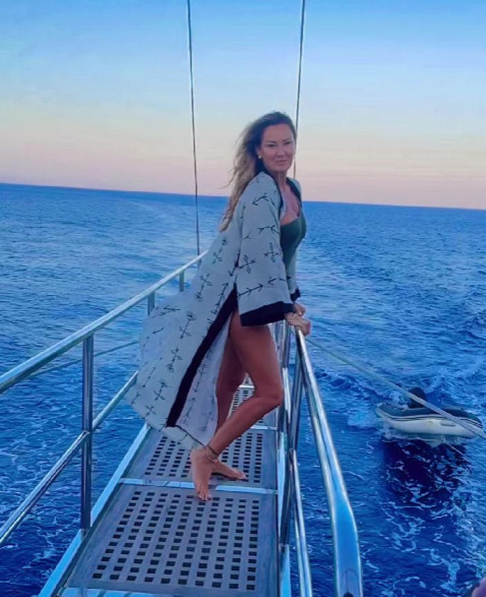 Mavi sulara açılan Pınar Altuğ, güverteye çıktı.