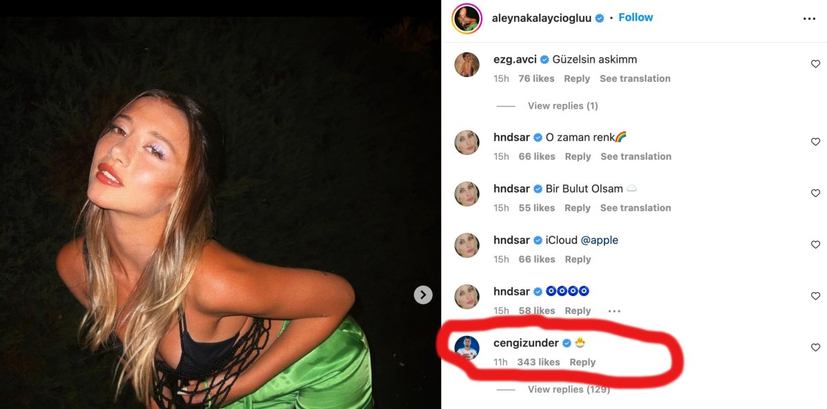 Aleyna Kalaycıoğlu’nun son instagram paylaşımına Cengiz Ünder’in yorum yapması sosyal medyada uzun süre konuşuldu.Aleyna Kalaycıoğlu’nun kız arkadaşlarıyla çıktığı bir tatilden paylaştığı kareler binlerce beğeni alırken Cengiz Ünder’in yorumu dikkatlerden kaçmadı..