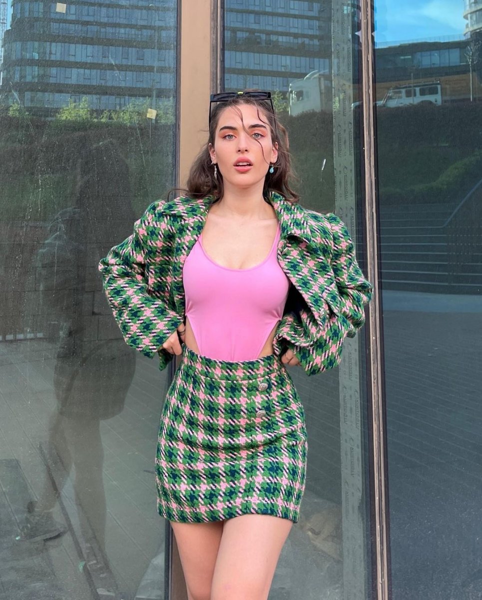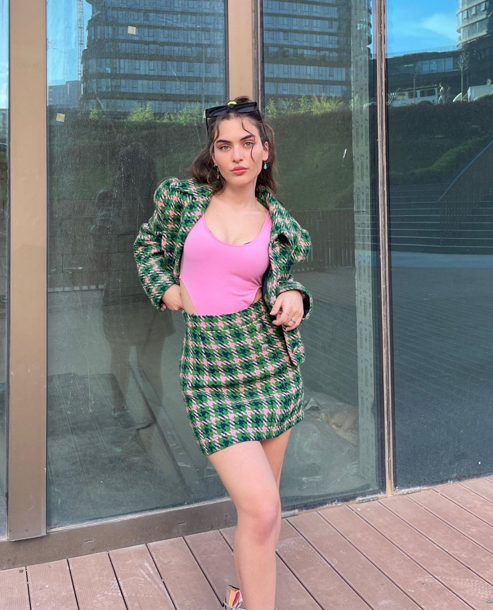 Yeşil pembe takımı ve mavi gözleriyle güzelliğini ortaya koyan Şimşek’e binlerce beğeni geldi.