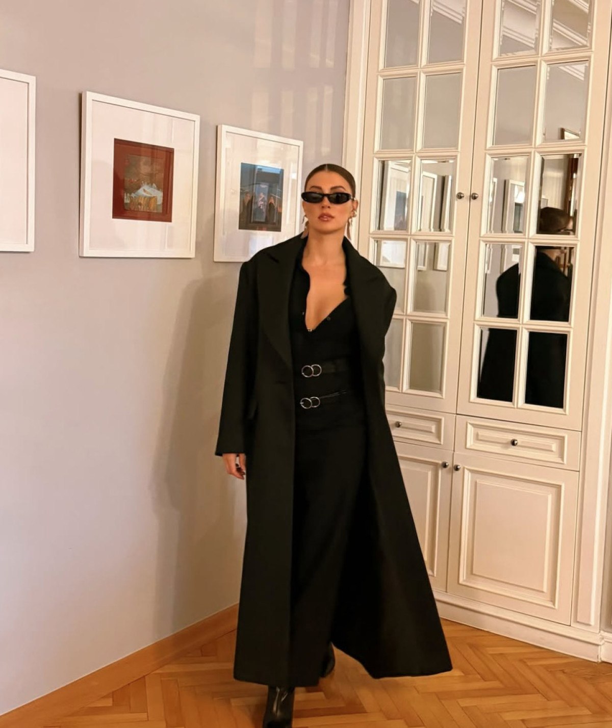 Siyahlar içerisinde bir kombin yapan Burcu Özberk verdiği kareleri Instagram hesabından paylaştı.