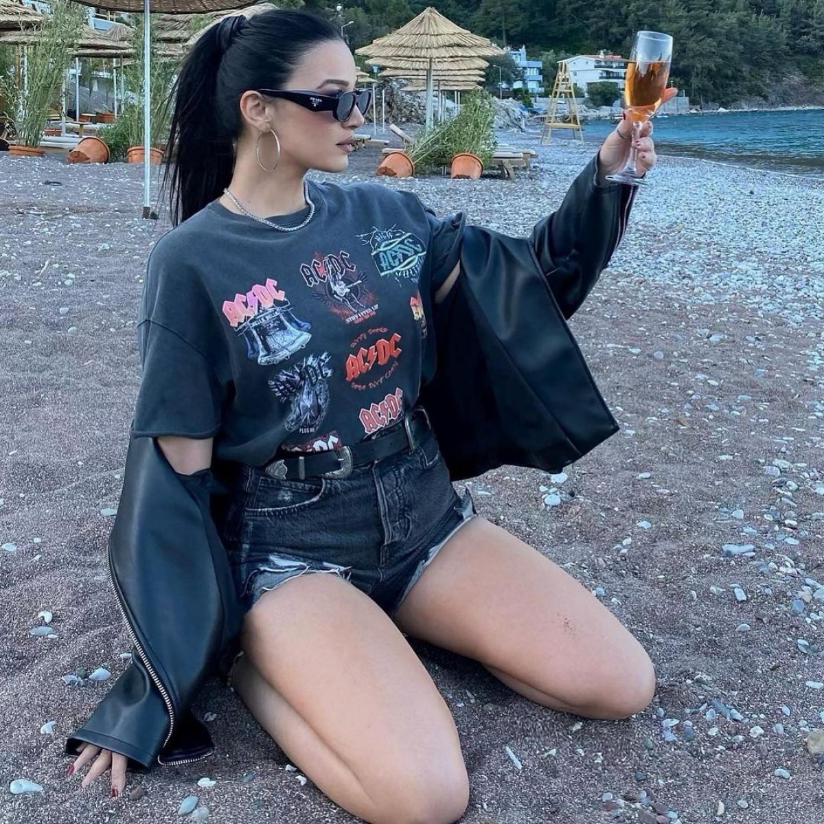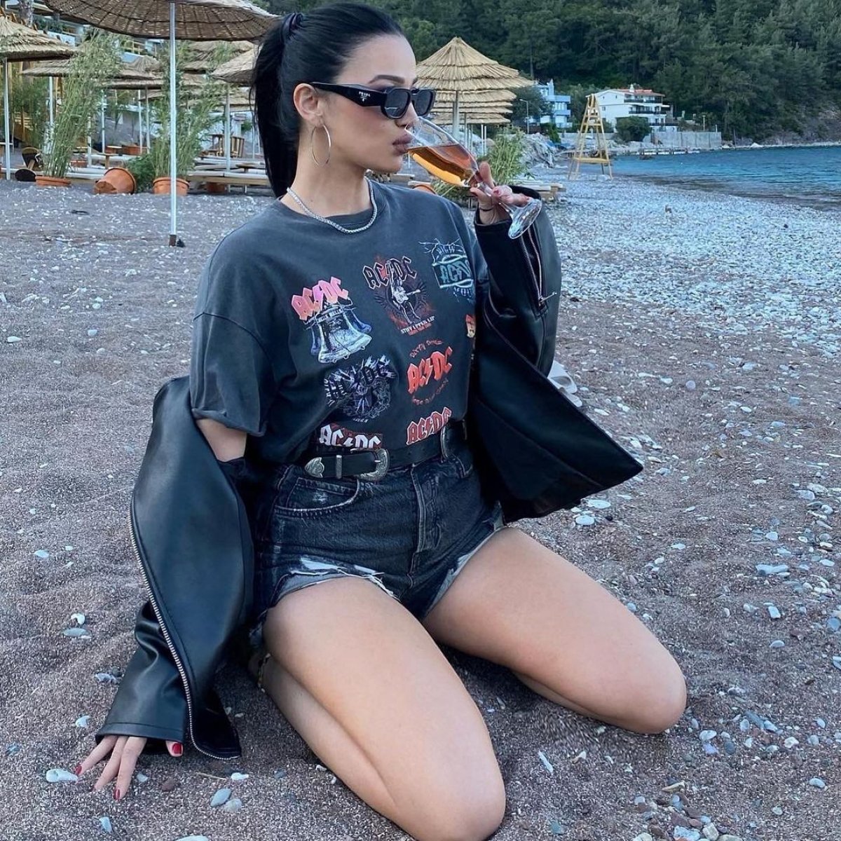 Emel Özkızıltaş, mini şortuyla sahilde diz çökere poz verdiği kareleri Instagram hesabından takipçileriyle paylaştı.