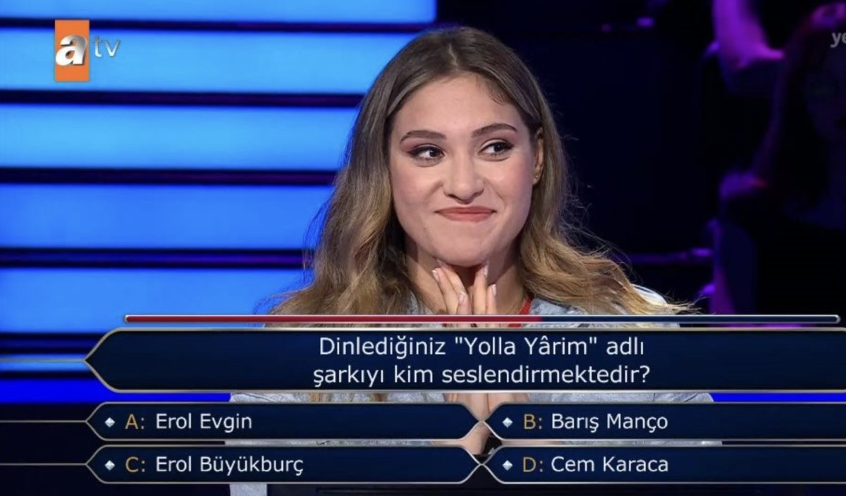 Yarışmacının karşısına sesli bir soru çıktı. Yarışmacıya, ‘Dinlediğiniz ‘Yolla Yarim’ adlı şarkıyı kim seslendirmektedir?’ sorusu soruldu.