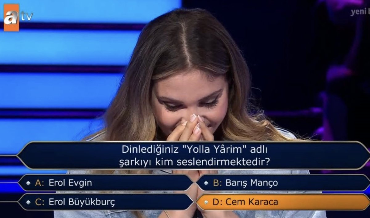 Joker hakkını kullanmak istemeyen yarışmacı, ‘D- Cem Karaca’ şıkkını seçti.