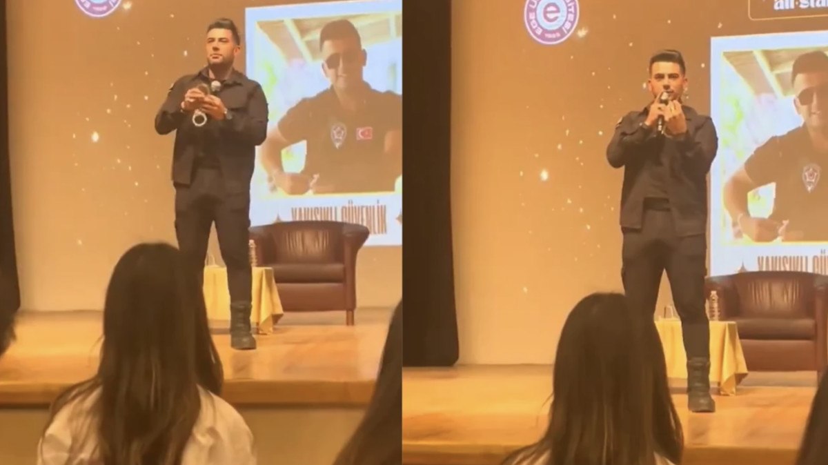 Sosyal medyada “Yakışıklı Güvenlik” olarak tanınan Muhammet Sürmeli isimli şahıs, Ege Üniversitesi’nde bir söyleşiye katıldı.