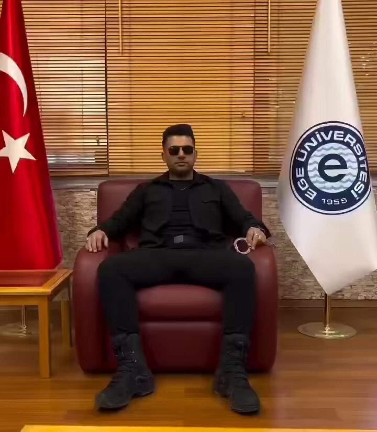 Sosyal medyada “Yakışıklı Güvenlik” olarak tanınan Muhammet Sürmeli isimli şahıs, Ege Üniversitesi’nde bir söyleşiye katıldı.