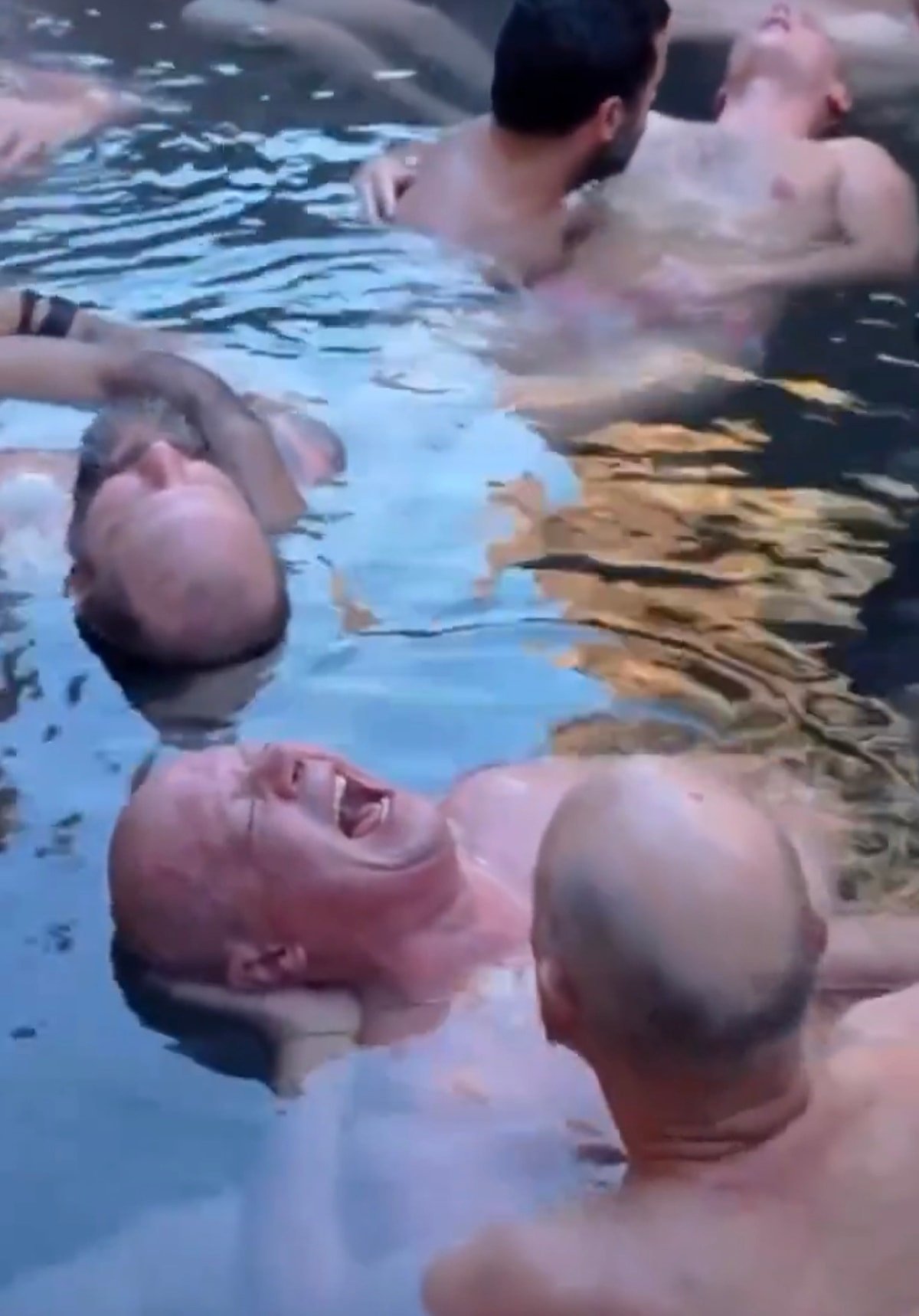 Söz konusu görüntülerde onlarca erkeğin aynı havuzda inziva kampına girerek hüngür hüngür ağladığı görüldü.