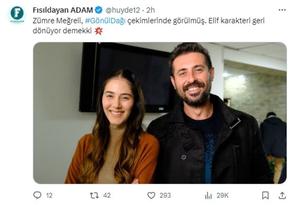 Twitter üzerinden yapılan bir paylaşımda ünlü oyuncunun Gönül Dağı çekimlerinde görüldüğü belirtildi.