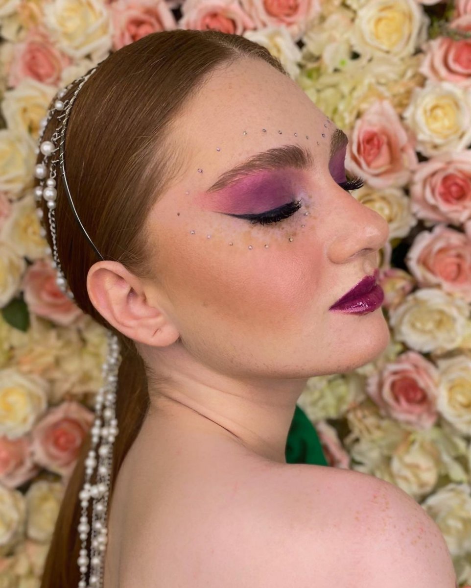 Mürdüm rengi göz makyajı ve rujuyla poz veren Sevilay Gültekin, Instagram’a damga vurdu.