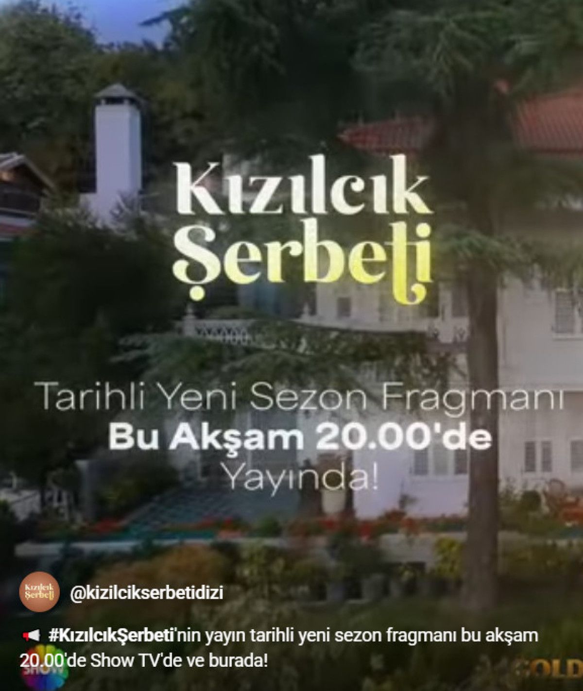 YouTube’da yapılan paylaşımda, yeni sezon tarihli Kızılcık Şerbeti fragmanı saat 20.00’de Show TV’de denildi.