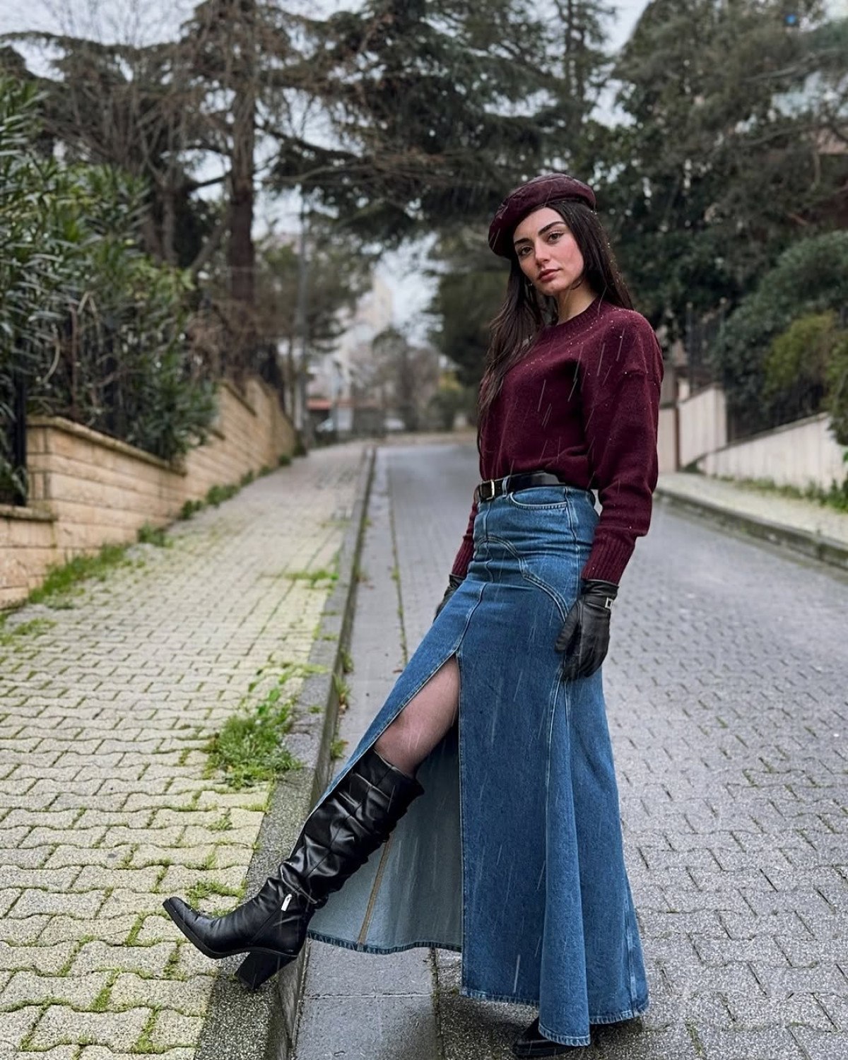 Yırtmaçlı eteği ile poz veren Törer, Instagram’ı mest etti.