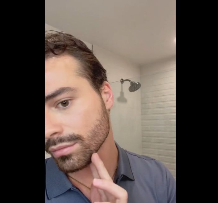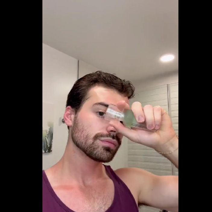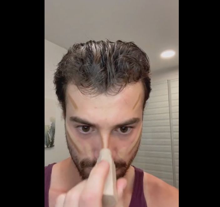 Hazırlanırken bakım yapan genç, bununla sonlu kalmadı ve bakımına makyajı da ekledi.