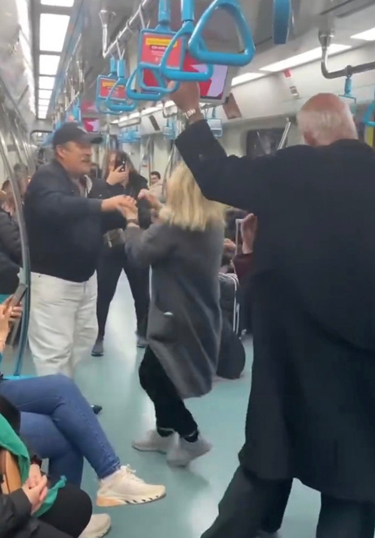 Çiftlerin dans ettiği görüntüler, Marmaray’da bulunan başka vatandaşlar tarafından kayda alındı.