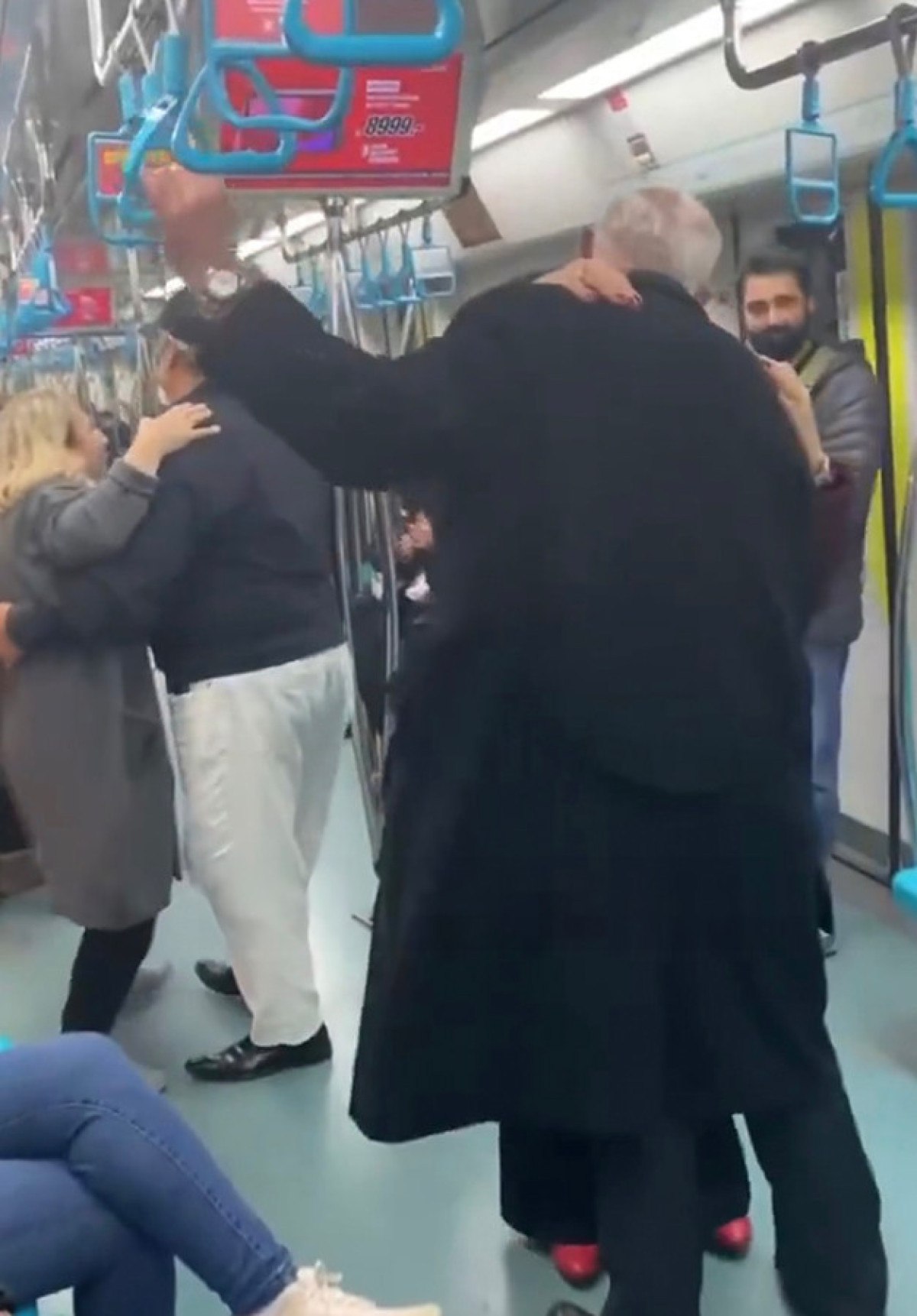Çiftlerin dans ettiği görüntüler, Marmaray’da bulunan başka vatandaşlar tarafından kayda alındı.
