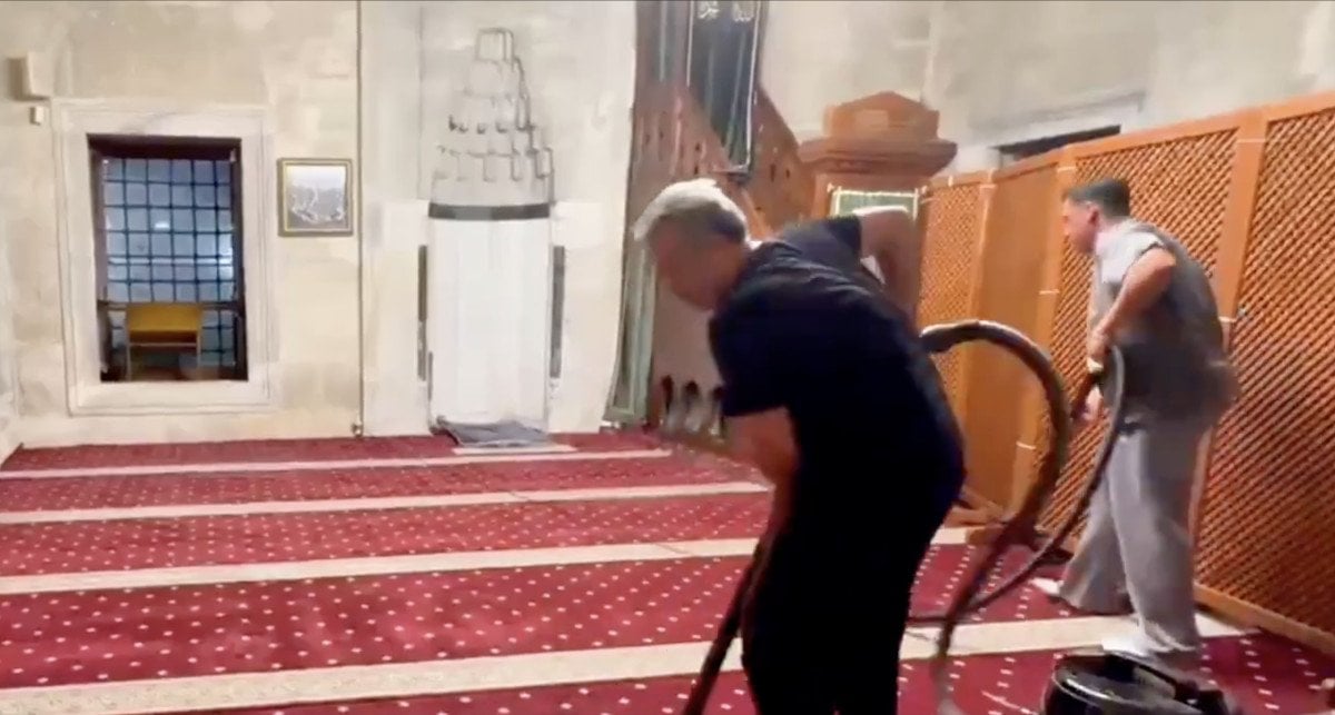 CAMİ TEMİZLERKEN GÖRÜNTÜLENDİ