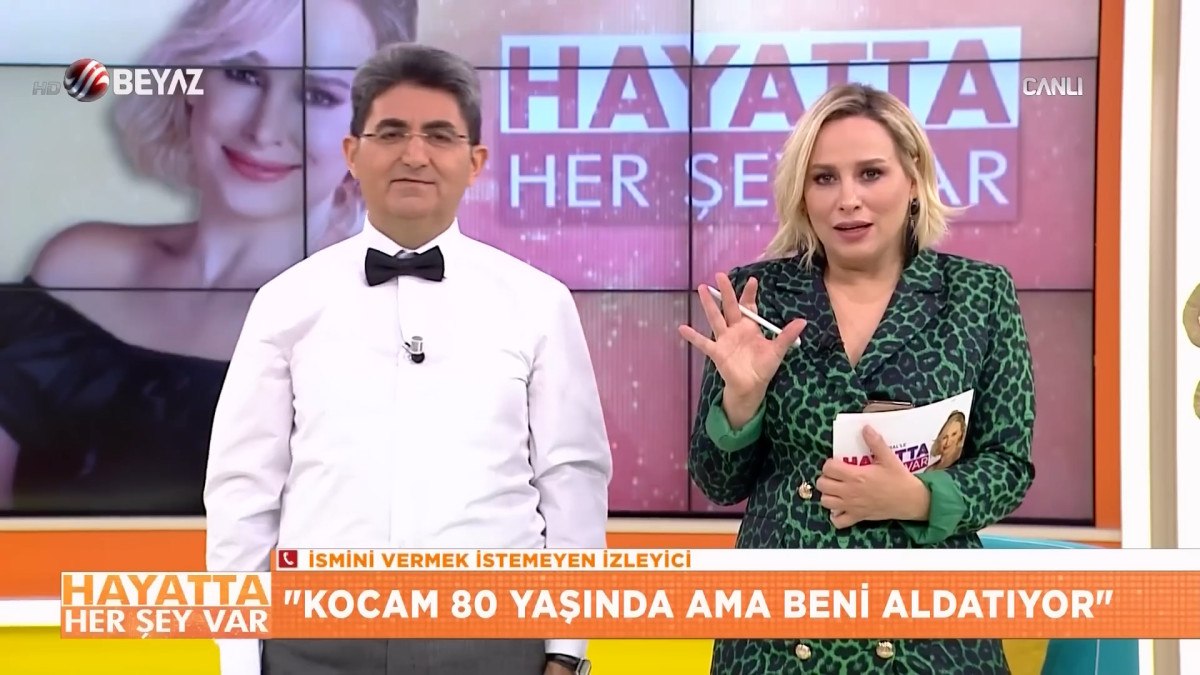 Programa katılan bir kadın 80 yaşındaki eşinin kendisini aldattığını söyledi. Bağlantı yapan kadın, “Elli beş yıllık evliyim. Fakat kocam aldatıyor. Şu an 80 yaşında.” dedi.