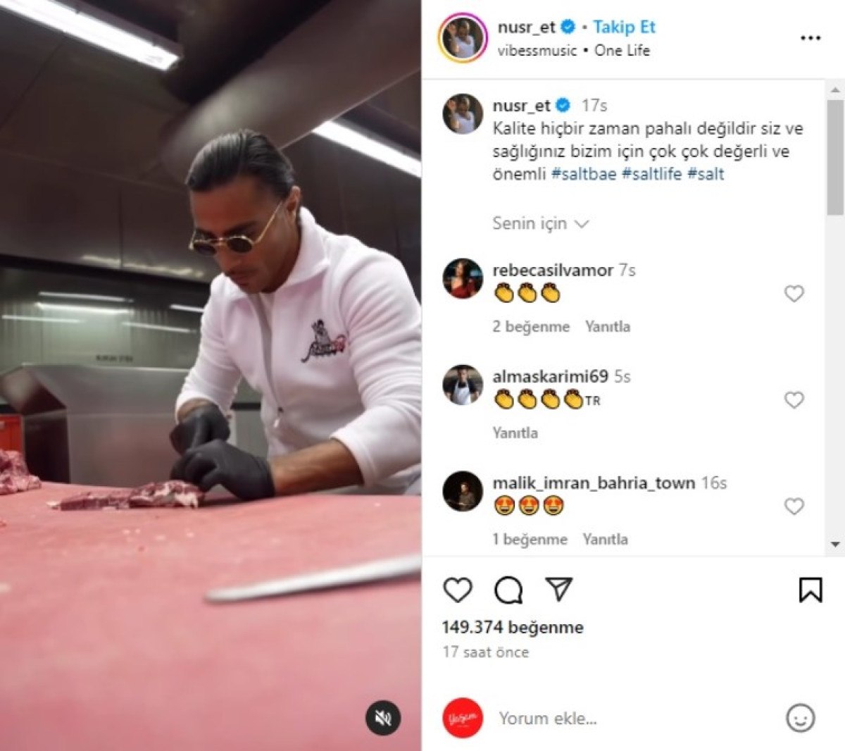 Videolu paylaşımına; ‘Kalite hiçbir zaman pahalı değildir. Siz ve sağlığınız bizim için çok çok değerli ve önemli.’ notunu ekleyen Nusret’in bu paylaşımı gönderme olarak yorumlandı.